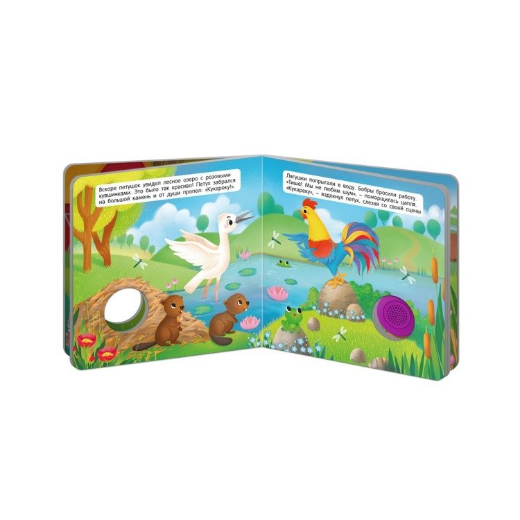 Книги со звуковым модулем для самых маленьких. Нажми на кнопку и послушай голос главного героя. Читай, слушай, играй, расти! В каждой книге серии забавная и поучительная история, яркие картинки и голос главного героя. Это отличный способ познакомить ребенка с окружающим миром и увлечь его чтением. Малыш будет с удовольствием рассматривать яркие страницы и читать историю главных героев книги. Книжка сделана из плотного картона с глянцевой ламинацией, поэтому родители могут не опасаться, что ребёнок порвёт странички. Благодаря компактному формату (15,5х15,5 см) её удобно брать с собой в дорогу. Книжка укомплектована батарейками. Одна кнопка - один звук.
