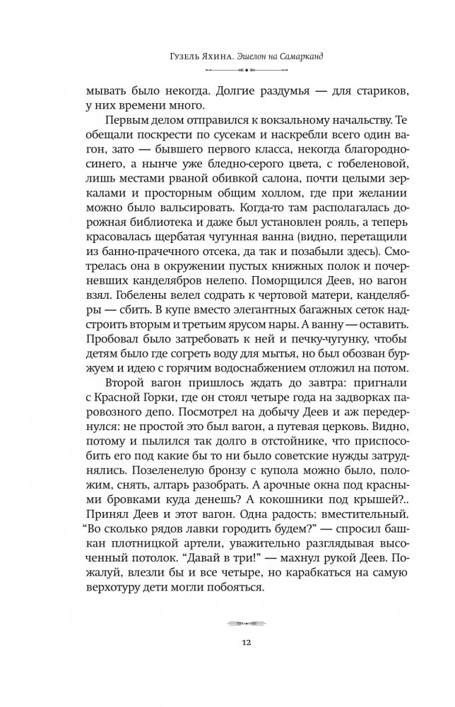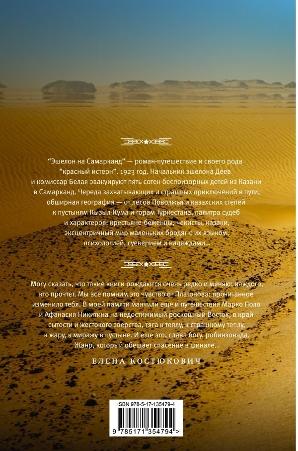 Ее новая книга «Эшелон на Самарканд» — роман-путешествие и своего рода «красный истерн». 1923 год. Начальник эшелона Деев и комиссар Белая эвакуируют пять сотен беспризорных детей из Казани в Самарканд. Череда захватывающих и страшных приключений в пути, обширная география — от лесов Поволжья и казахских степей к пустыням Кызыл-Кума и горам Туркестана, палитра судеб и характеров: крестьяне-беженцы, чекисты, казаки, эксцентричный мир маленьких бродяг с их языком, психологией, суеверием и надеждами…