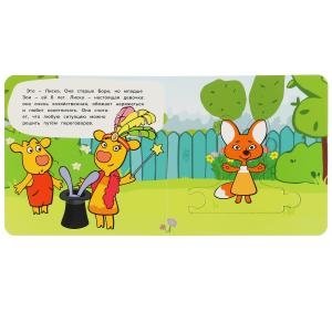 Малыш с удовольствием будет рассматривать яркие страницы с изображением героев любимого мультфильма и играть с пазлами: их можно вставлять - вынимать из пазов, а можно сложить в ряд и получить одну общую картинку. Книжка сделана из плотного картона, поэтому мамы могут не опасаться, что ребёнок порвёт странички.