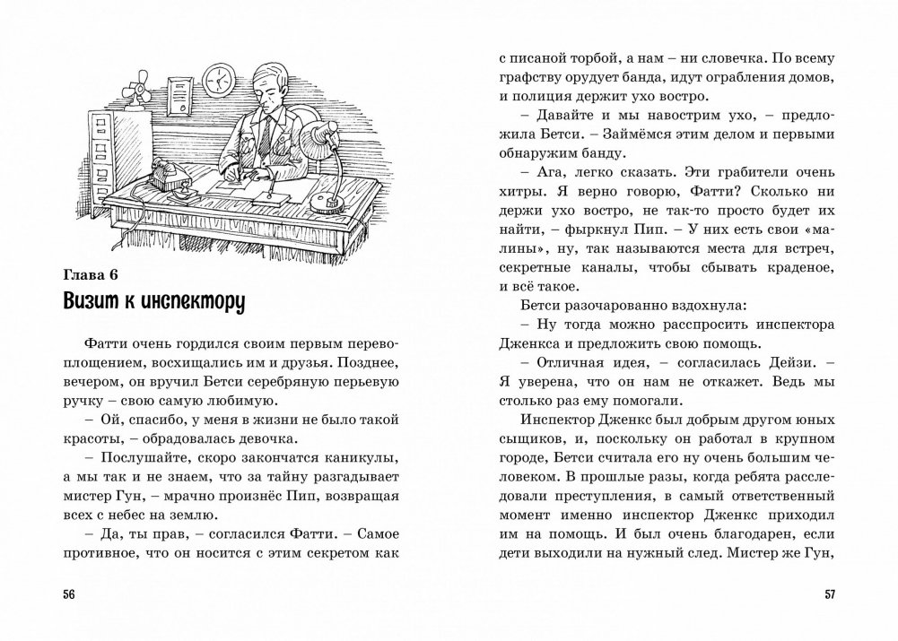 Вот и летние каникулы. Пятеро юных сыщиков изнемогают от безделья в родном городке Петерсвуд, пока однажды не узнают об украденном ожерелье. Ребята с радостью берутся за расследование, им не терпится перехитрить своего давнишнего соперника – констебля Теофиля Гуна. А для этого друзьям придётся прибегнуть к чудесам маскировки, пережить странное происшествие в Музее восковых фигур и узнать, какое отношение имеет детская игра в напёрсток к раскрытию новой тайны…