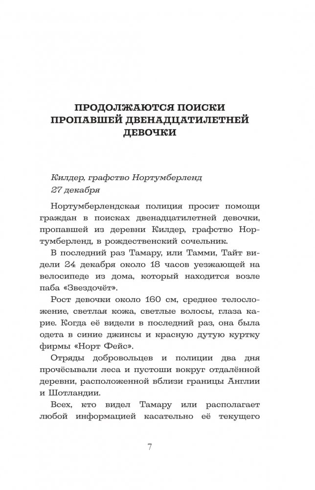В небольшой деревушке возле Нортумберленда невиданное происшествие: исчезла двенадцатилетняя Тамми. Только её брат-близнец Итан знает, где она находится. Этот секрет необходимо сохранить, иначе он рискует никогда больше не увидеть сестру. Но это не значит, что он собирается сдаваться. Вместе со своим другом Игги и загадочной Эллиэнн Итан отправляется на выручку Тамми.