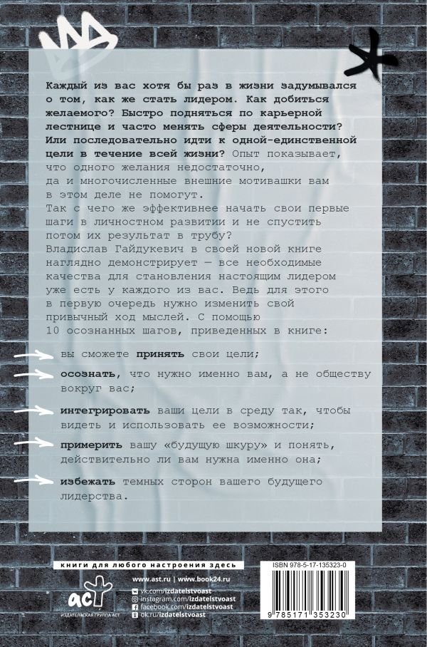 Владислав Гайдукевич в своей новой книге наглядно демонстрирует — все необходимые качества для становления настоящим лидером уже есть у каждого из вас. Ведь для этого в первую очередь нужно изменить свой привычный ход мыслей. С помощью 10 осознанных шагов, приведенных в книге: