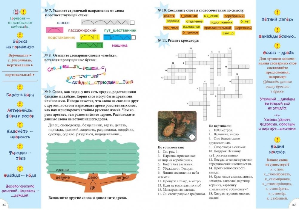 Пособие разнообразит словарную работу на уроках и дома. Материал, приведенный в нем, превратит непростую работу в интересное занятие, расширит представления детей о русском языке. Они узнают, что такое этимология, родственные и устаревшие слова, синонимы… И, конечно, хорошо запомнят сами слова.