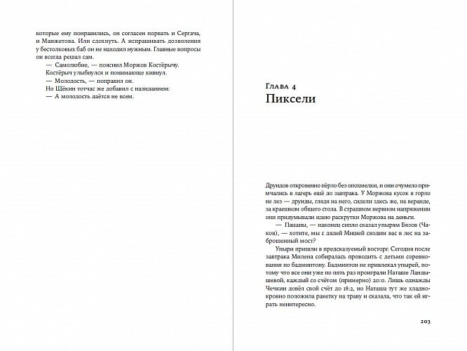 Главный герой, философ и бонвиван Борис Моржов, путешествует по прежним любовницам-училкам, как Чичиков по усадьбам помещиков, и «чичит» сертификаты — «мёртвые души» несуществующих обитателей лагеря. А ещё в романе есть проститутки, продажные менты, коррупционеры-чиновники, деревенские алкаши и много прочего пёстрого народа. Но весёлый роман формулирует очень серьёзный вопрос: что правильнее — быть успешным или быть подлинным?