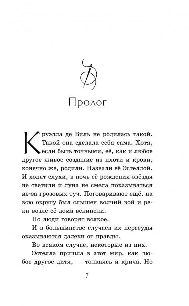 Эстелла была необычным ребёнком. Во-первых, конечно, волосы – одна половина головы белая, а другая чёрная. А ещё у неё был невероятный талант – с юных лет Эстелла могла создавать умопомрачительные наряды, поражающие воображение. Несложно догадаться, что завести друзей Эстелле было не так просто, и поэтому часто на первый план выходила Круэлла – так называла мама Эстеллы уверенную, но несколько жестокую сторону своей дочери. Но маме было невдомёк, что когда-нибудь именно эта часть Эстеллы поможет ей выжить и воплотить в реальность свои самые смелые мечты. А ещё отомстить той, кто должна была открыть Эстелле дорогу в большой мир, а вместо этого разрушила её жизнь…