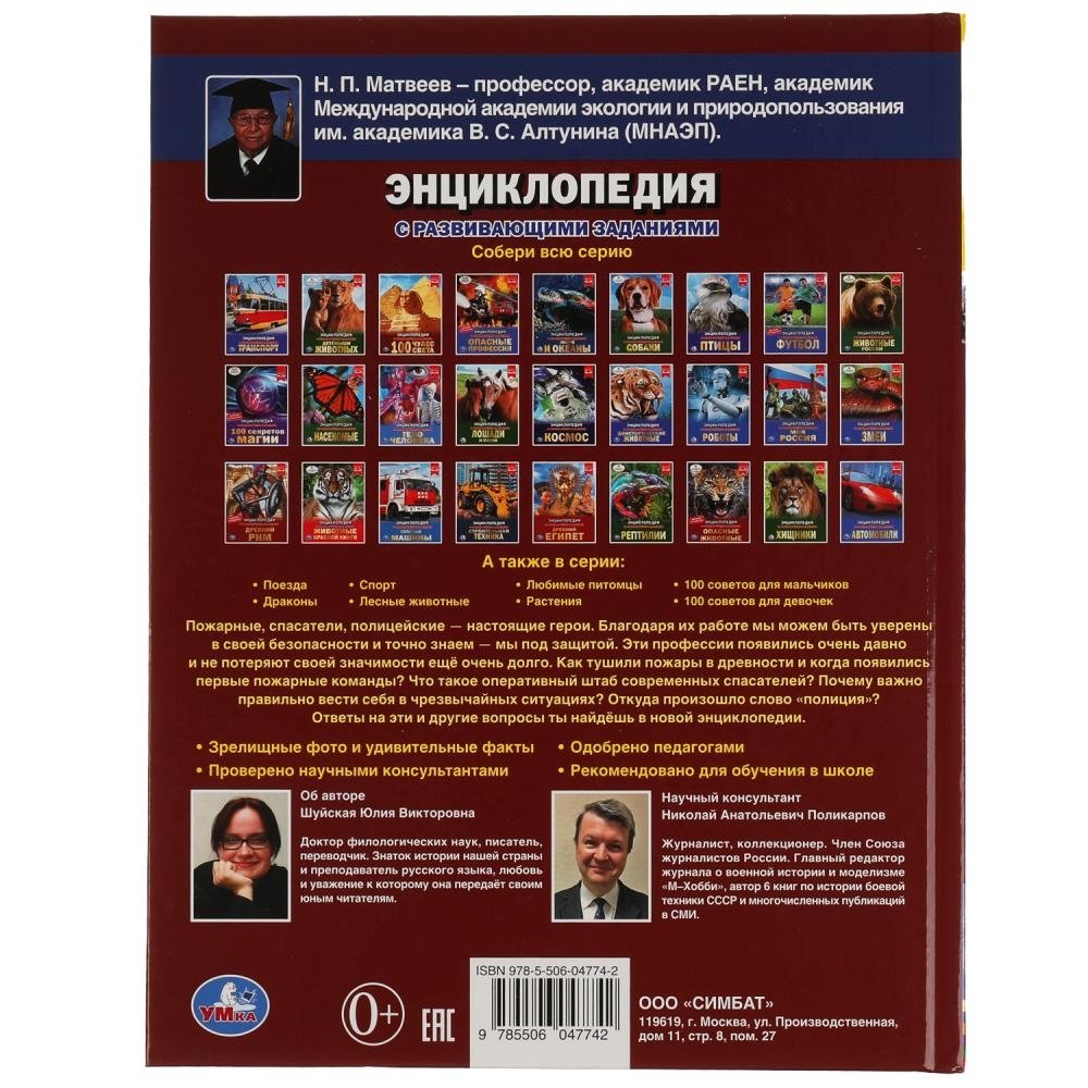Пожарные, спасатели, полицейские. Энциклопедия с развивающими заданиями