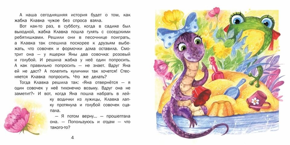Жабка Клавка такая шалунишка, хитрюга и разбойница! Она так любит взять что-нибудь чужое без спроса. И всегда забывает вернуть.