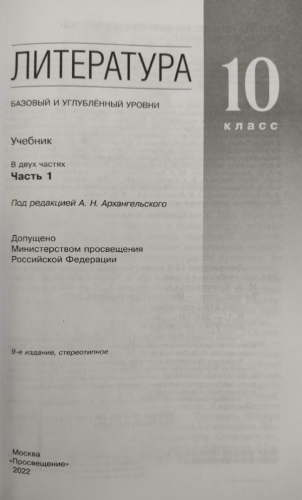 Литература. 10 класс. Учебник. В 2-х частях. Часть 1. Базовый и углубленный уровни