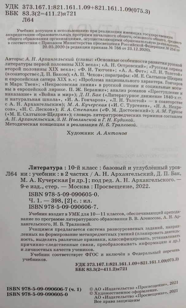 Учебник входит в УМК для 10—11 классов, обеспечивающий преподавание по программе литературного образования В.В. Агеносова, А.Н. Архангельского, Н.Б. Тралковой, и соответствует ФГОС. Предназначен для школ и классов с углубленным изучением литературы. Учащимся предлагается система разноуровневых заданий, направленных на формирование метапредметных умений (планировать деятельность, выделять различные признаки, классифицировать, устанавливать причинно-следственные связи, преобразовывать информацию и др.) и личностных качеств учеников.