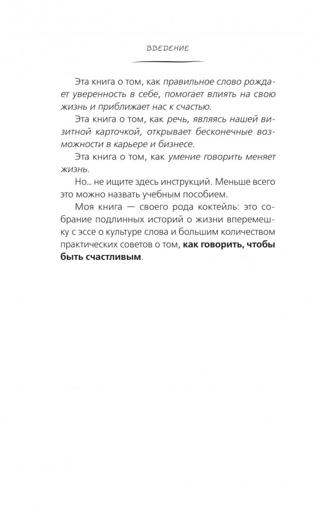 Неумение говорить мешает нам жить и быть счастливыми. Мы проигрываем в спорах, не можем заявить о себе, теряемся перед вопросами, упускаем возможности изменить свою судьбу. Речь — наша визитная карточка, а мы часто скромно прячем её в кармане, стесняясь показать.