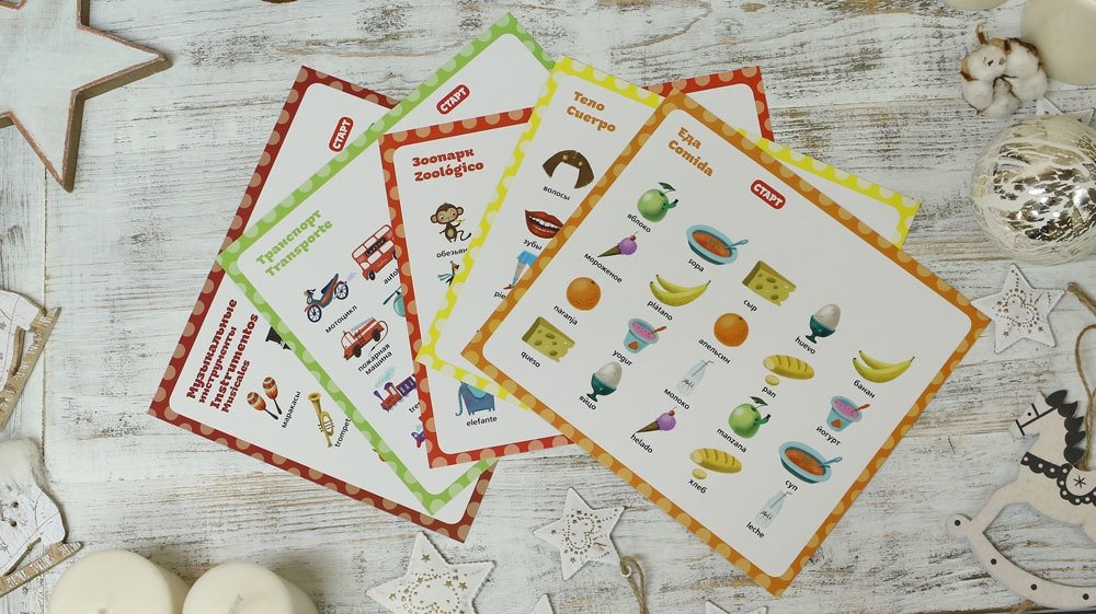 Интерактивная голосовая книга для изучения испанского языка «Мой первый испанский». Первые 100 испанских слов малыш сможет выучить, находя одинаковые изображения. Одно из изображений озвучено на русском языке, другое — на испанском. Нажимая на рисунки и повторяя услышанное, ребёнок запоминает слова на испанском языке.