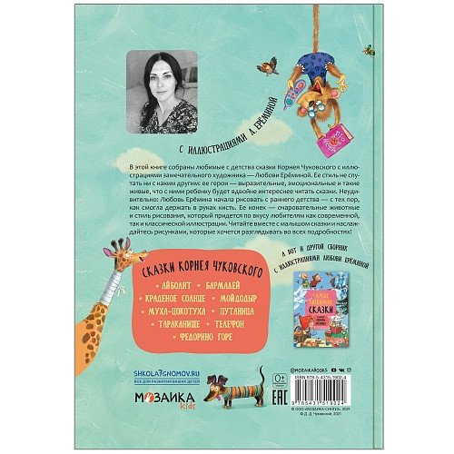 Все мы знаем и любим с детства сказки Корнея Чуковского. Но даже тексты, которые знаешь чуть ли не наизусть и можешь легко цитировать, заиграют совершенно новыми красками благодаря иллюстрациям замечательного художника — Любови Ерёминой. Ее стиль не спутать ни с каким другим: ее герои — выразительные, эмоциональные и такие живые, что ребенку будет вдвойне интереснее читать сказки Корнея Чуковского. Наслаждайтесь вместе с малышом рисунками, которые хочется разглядеть во всех подробностях!