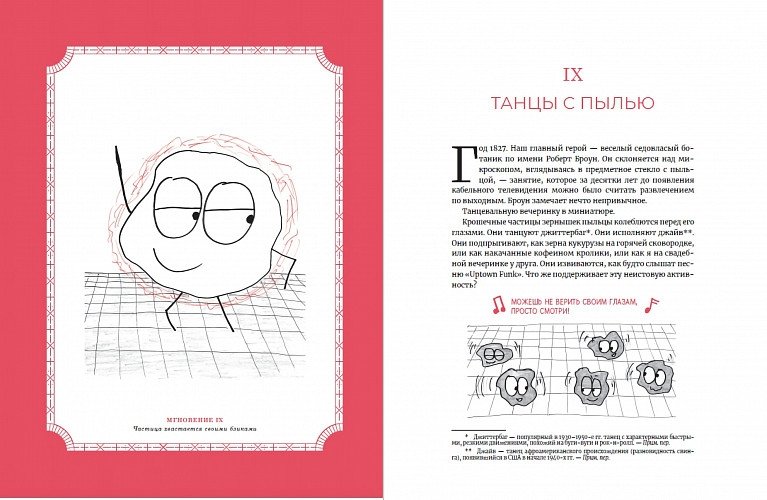 Тема движения времени находит отражение и в названиях частей книги — «Мгновения» и «Вечности», и в ее персонажах — от Шерлока Холмса до Марка Твена и Дэвида Фостера Уоллеса. C присущими ему юмором и изобретательностью Орлин выявляет связи между матанализом, искусством, литературой и любимой собакой по имени Элвис.