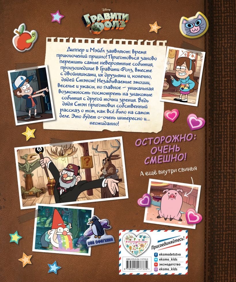 Фанаты "Гравити Фолз", трепещите! Перед вами новый крутой сборник о приключениях Диппера и Мэйбл! Вспомните все самые невероятные и странные случаи, произошедшие с двойняшками на каникулах в Хижине Чудес! Загадочные происшествия, много картинок, но главное – новый, неожиданный, взгляд на любимые истории! Ведь дядя Стэн готов поделиться собственной версией знакомых событий. Не упусти уникальный шанс узнать, как всё было на самом деле. ОБМЕНУ И ВОЗВРАТУ НЕ ПОДЛЕЖИТ!* Дядя Стэн