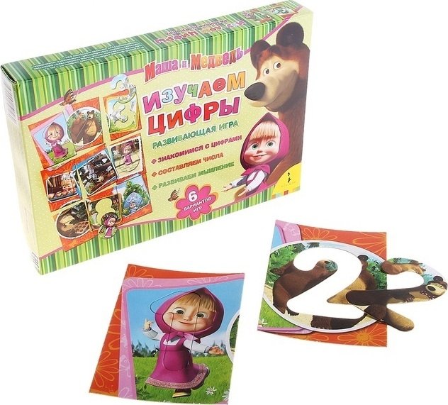 С очаровательными и любимыми героями мультфильма "Маша и Медведь" малыш легко и весело выучит цифры от 1 до 9, научится составлять числа.