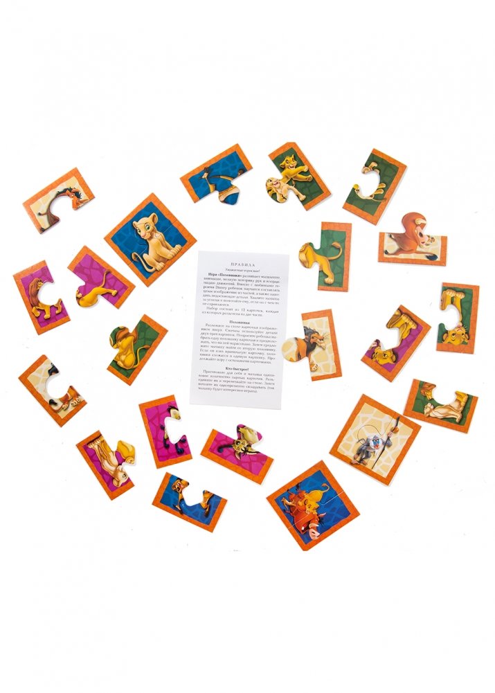 Настольная игра для малышей "Половинки" с героями популярных мультфильмов Disney учит складывать из двух частей целое, развивает зрительное восприятие и мелкую моторику рук.