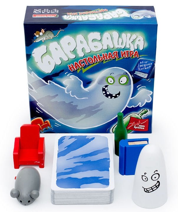 У вас в руках оказались фотокарточки, сделанные каким-то странным фотоаппаратом: фотографируя всего пять предметов, он постоянно путает их цвета. Зеленая бутылка становится красной, красное кресло – белым, а серая мышь – синей. Задача игроков быстро определить по карточкам признаки какого предмета там отсутствуют или, наоборот, какой предмет получился абсолютно таким же, как в реальности. А потом быстро схватить этот предмет! Или назвать! Барабашка – быстрая и веселая игра на реакцию. Попробуйте не запутаться в этом беспорядке!