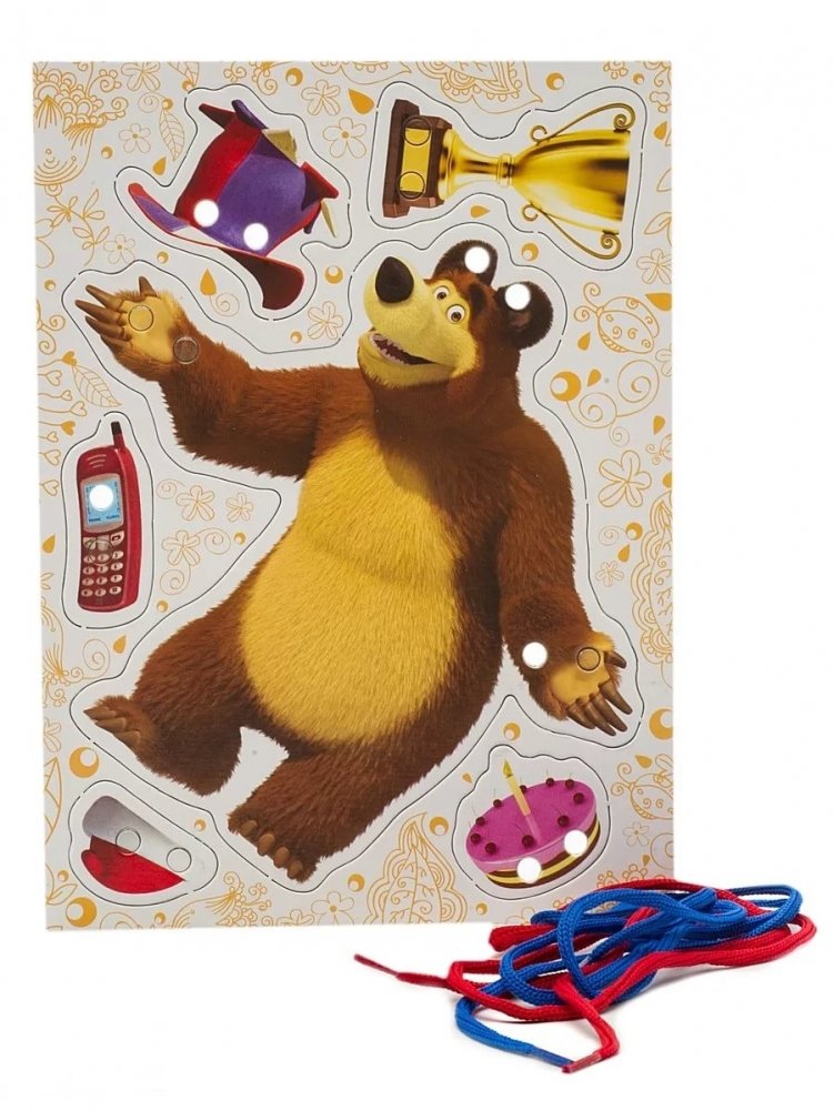 Увлекательная игра для самых маленьких! Продеваем шнурочки в дырочки и создаем свою неповторимую игрушку! Игра-шнуровка с героями популярного анимационного сериала "Маша и Медведь" - это не только веселое, но и полезное занятие! Играя ребенок учится, развивает мелкую моторику, глазомер, усидчивость.
