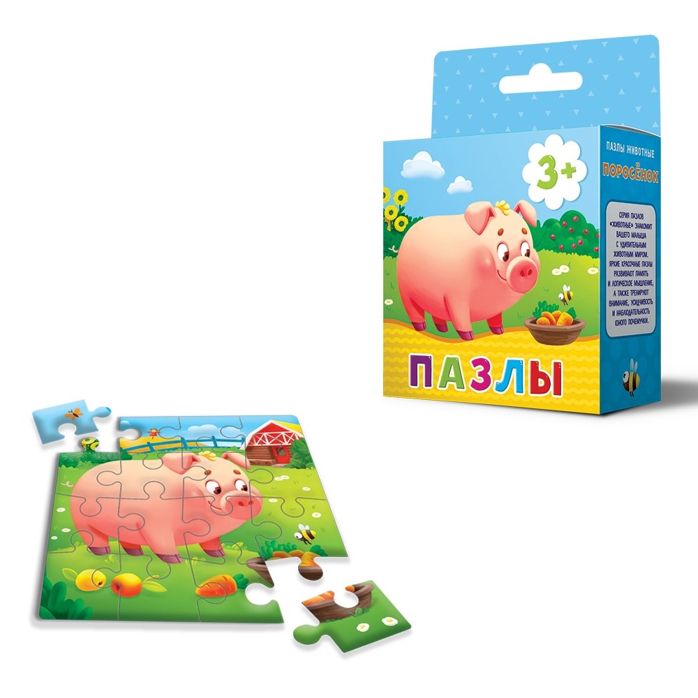 Пазл. Животные. Поросенок. 16 деталей