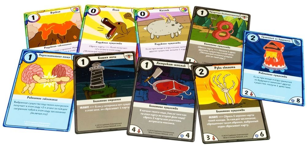 "Время приключений: карточные войны" — самая эпичная настольная игра, какую можно найти в землях Ууу... да и не только там! В настольное сражение вступают добрые земли — вместе с доброзавром, пушистым козликом и ванильным ангелком. И только губительная мощь вулкана способна обуздать это нашествие милоты!