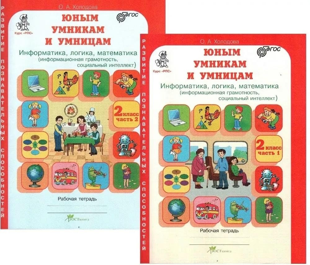 Юным умникам и умницам. Информатика. Логика. Математика. Задания по развитию познавательных способностей. 2 класс. Рабочая тетрадь. Комплект из 2 частей. ФГОС