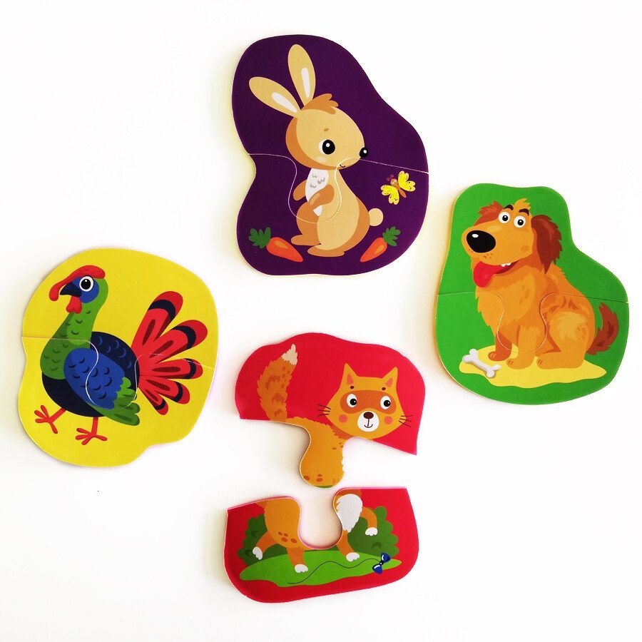 Пазлы для самых маленьких в прозрачной мягкой упаковке, иллюстрированные яркими и красочными картинками. Пазлы выполнены в крупном формате, в наборе собрано четыре картинки. Детали пазла позволяют легко брать их в детские ручки, а также легко соединять фрагменты в готовые картинки.