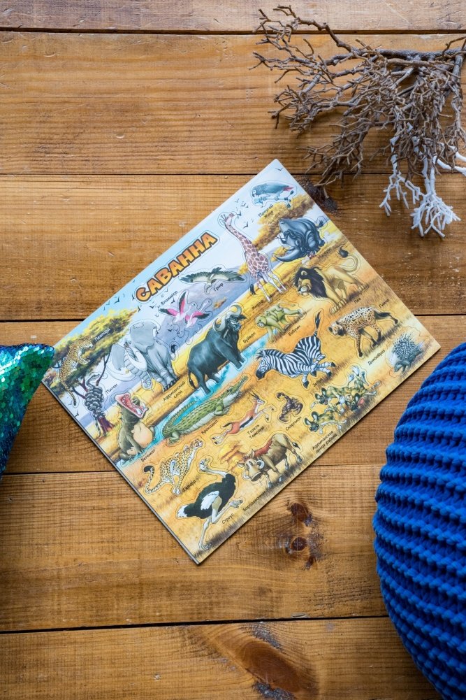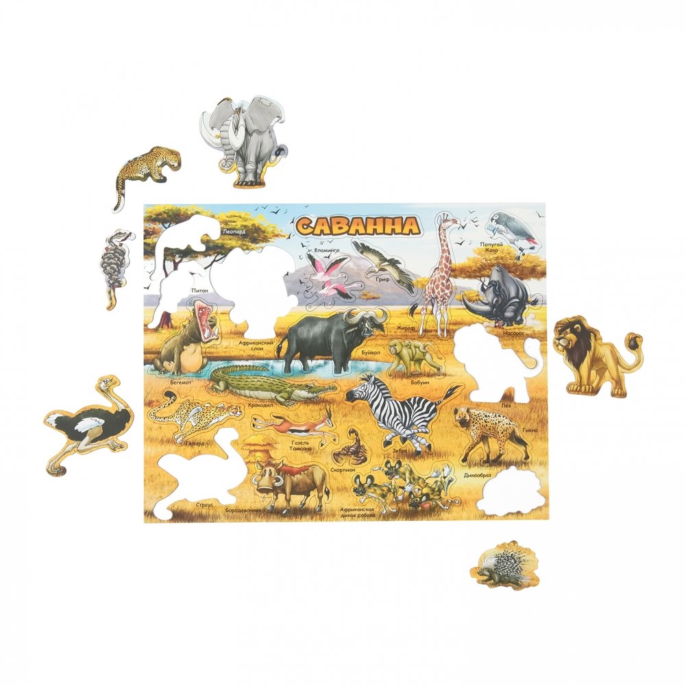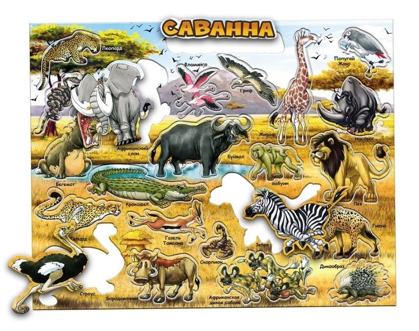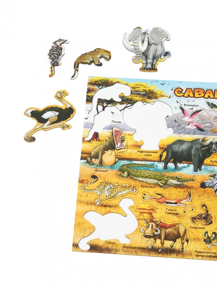 В африканской саванне живут самые необычные животные! Познакомьтесь с ними и узнайте много нового с помощью данного магнитного пазла. Он сделан в ярких тонах, а все животные выполнены в виде красочных рисунков, сочетающих в себе реалистичные изображения и мультипликацию.