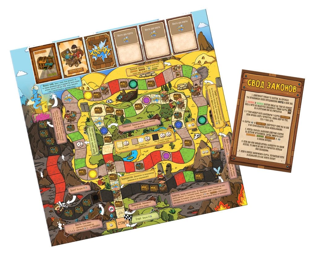 Удачный бросок кубиков отправляет вас в телепорт. Вы вырываетесь на 10 клеток вперед. Теперь уже никому вас не догнать! Но не тут-то было: противник заглядывает в Лавку Джо, и из-за одной-единственной карты ваш храбрый персонаж возвращается на 8 клеток назад. Так нечестно! Ну, держитесь… Правил в игре нет (они вам и не понадобятся), зато есть настоящий свод законов, который ответит на все вопросы. Выбирайте себе персонажа по душе — харизматичного пёсика или, например, вооруженную до зубов путешественницу — и отправляйтесь в путь!