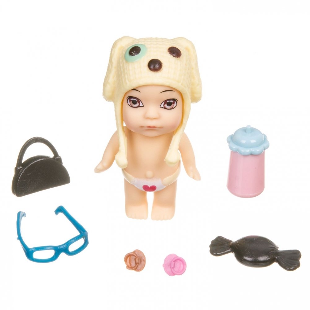 Набор игровой Bondibon "Куколка OLY", в шапочке-ушанке с животным и аксессуарами в банане, девочка, 8 см, арт. 3370-B
