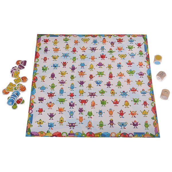 Усложните игру! Переверните игровое поле. Здесь чубрики меньше по размеру, их больше по количеству, и у каждого есть шляпы, бабочки и носки. Для выполнения задания кидайте сразу 3 кубика – цветной, с лицом и с одеждой.