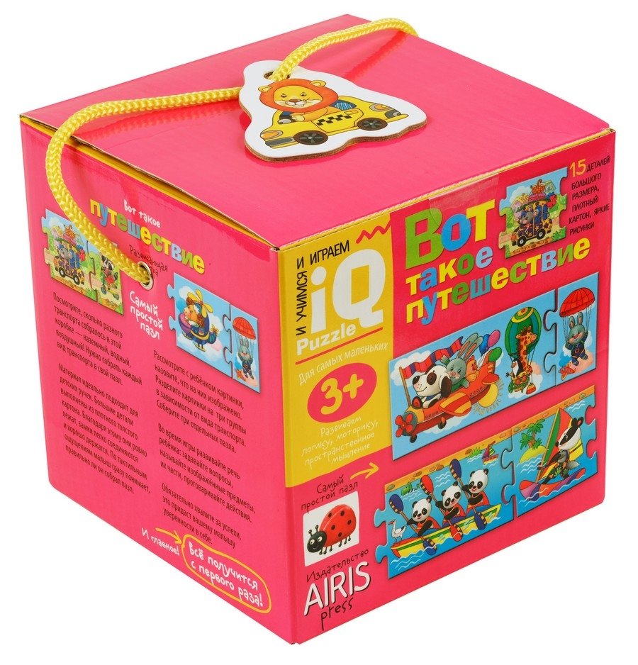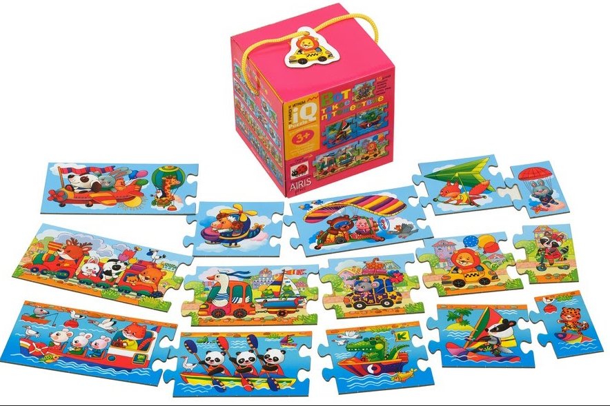 Увлекательная настольная игра познакомит ребёнка с разными видами транспорта, разовьёт логику, моторику и пространственное мышление. В наборе 15 деталей с изображением наземного, водного и воздушного транспорта. Нужно собрать каждый вид транспорта в свой пазл, а затем сложить их в одну картинку. Детали можно менять местами.