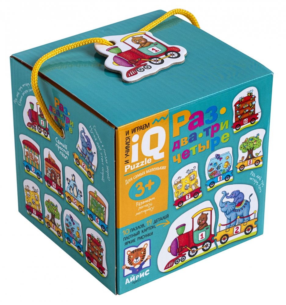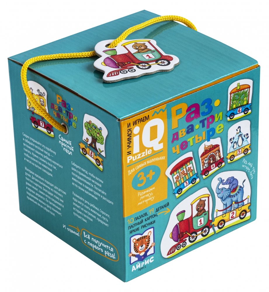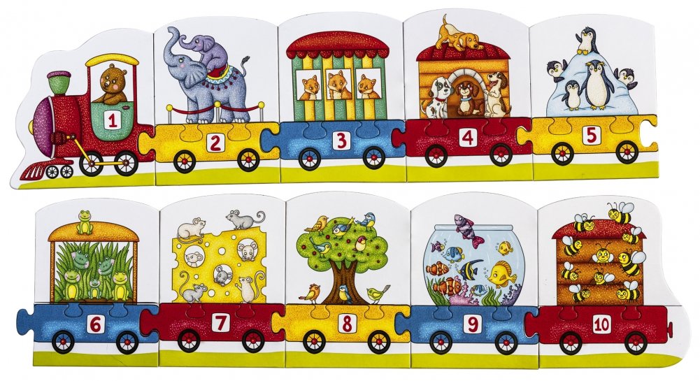Пазлы «Раз, два, три, четыре» – это увлекательная настольная игра для развития навыков счёта и мелкой моторики. В наборе 10 пазлов в виде поезда, в котором едут животные. У каждого вагона свой номер. Нужно сложить пазл так, чтобы количество животных и число на вагоне совпадали. Внутри есть подробное описание правил игры. Набор предназначен для детей старше 3 лет.