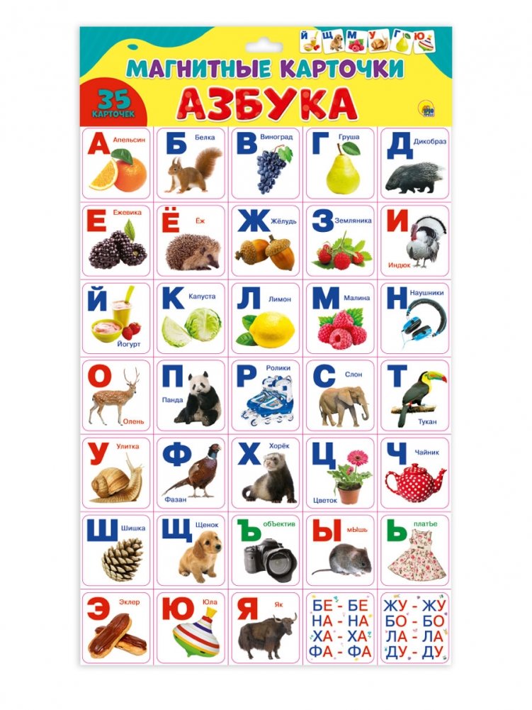 Представляем наш новый проект: "Магнитные карточки"! Малыш узнает буквы русского алфавита и научится сопоставлять букву и слово. Две карточки набора содержат простые слоги для знакомства ребёнка с навыком послогового чтения. Карточки можно крепить на любую металлическую поверхность или магнитную доску. Магнит по размеру каждой карточки обеспечит прочность крепления.