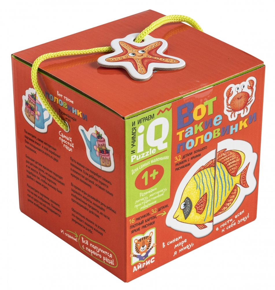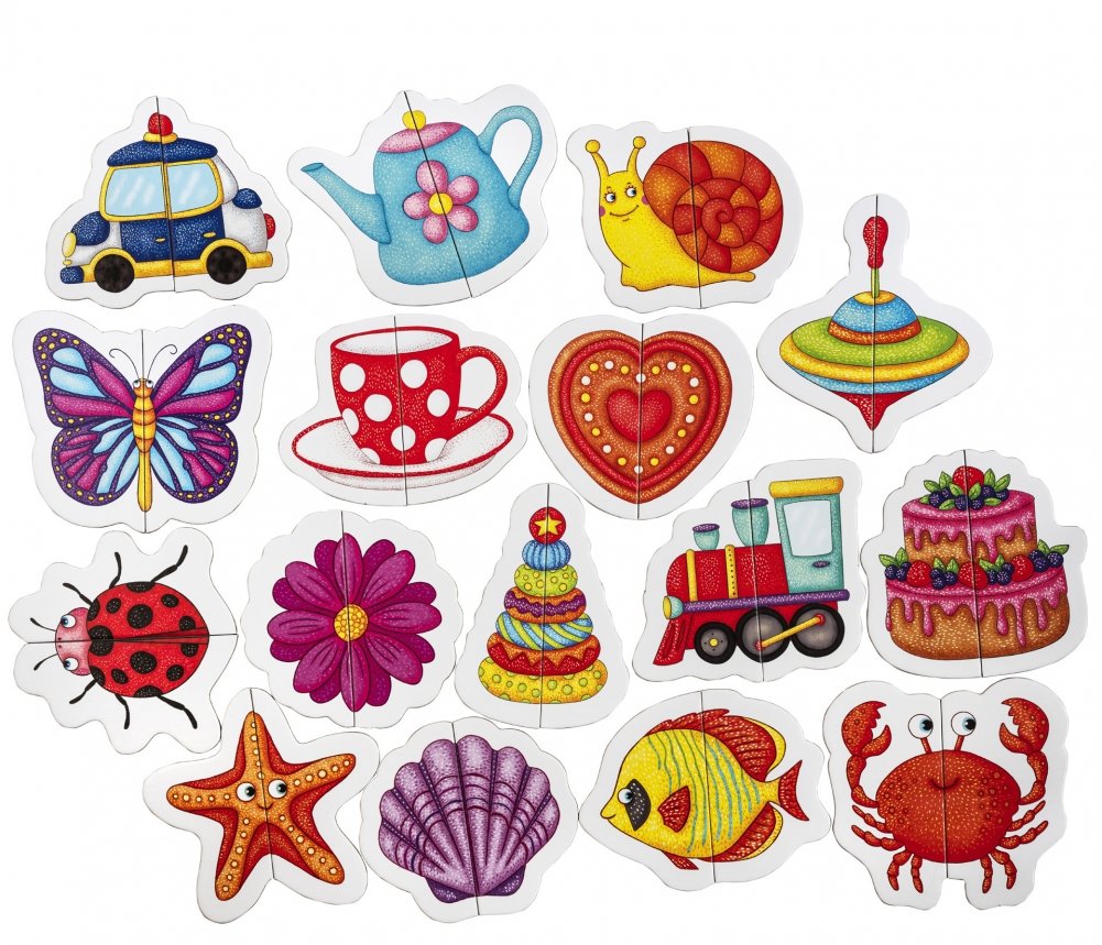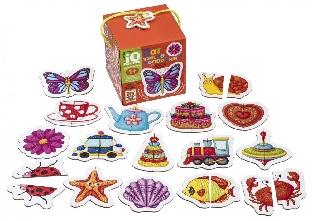Увлекательная настольная игра познакомит ребёнка с различными предметами, разовьёт моторику и пространственное мышление. В наборе 16 картинок с изображением игрушек, животных, посуды и еды. Они складываются всего из двух половинок. Цель игры — сложить картинку из двух частей. Внутри есть подробное описание правил игры. Набор предназначен для детей старше 1 года.