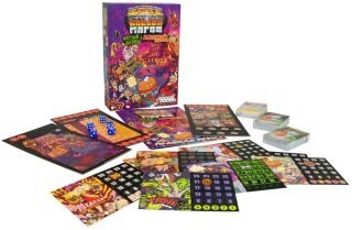 Комплектация: 9 планшетов героев, 9 фишек героев с подставками, 7 медалей недобитых колдунов, 15 медалей за выпил, 8 черепушек, 147 карт заклинаний сокровищ и дохлых колдунов, 6 шестигранных кубиков, жетон могучего бонуса, правила игры.