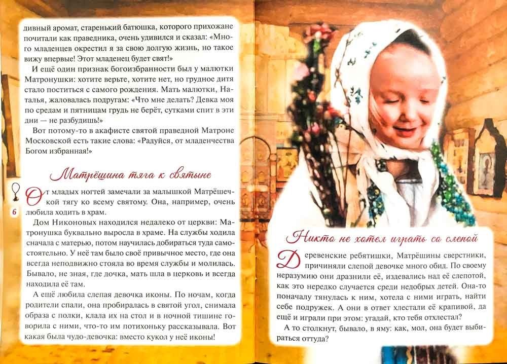 Автор книги Наталья Скоробогатько широко известна как современная сказательница житий святых. Ее книги о святом Луке, блаженной старице Сепфоре, рассказы о святых для детей уже более двадцати лет пользуются спросом у православных читателей. На этот раз автор живо и тепло повествует о жизни блаженной старицы Матроны Московской. Молитвенным продолжением жития служит акафист святой Матроне, вошедший в это издание.
