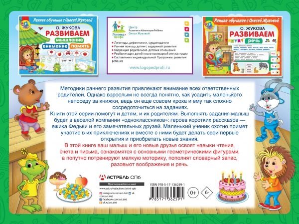 В этой книге каждый блок заданий предварен увлекательным рассказом, герои которого – ежик Федька и его замечательные друзья – познают окружающий мир, приобретают новые знания и решают увлекательные задачки. Занимаясь вместе с ними, ваш малыш освоит навыки чтения, счета и письма, ознакомится с основными геометрическими фигурами, пополнит словарный запас, а также потренирует мелкую моторику.