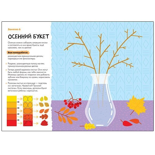 Результатом каждого занятия станет законченное произведение, которое ребенок создал сам. В конце альбома ребенка ждет большое итоговое задание, где он сможет применить все свои новые умения. Подходящий уровень сложности и полученное удовольствие от занятий — вот залог успешного обучения по системе.