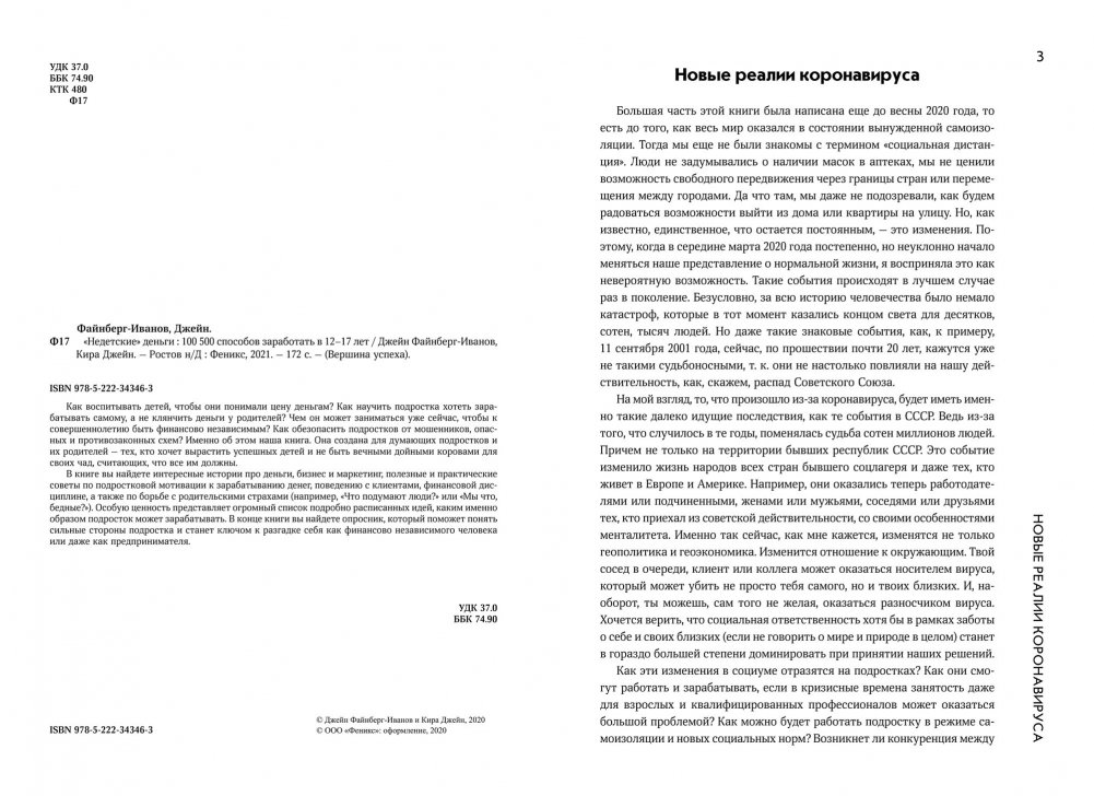 В книге вы найдете интересные истории про деньги, бизнес и маркетинг, полезные и практические советы по подростковой мотивации к зарабатыванию денег, поведению с клиентами, финансовой дисциплине, а также по борьбе с родительскими страхами (например, «Что подумают люди?» или «Мы что, бедные?»). Особую ценность представляет огромный список подробно расписанных идей, каким именно образом подросток может зарабатывать. В конце книги вы найдете опросник, который поможет понять сильные стороны подростка и станет ключом к разгадке себя как финансово независимого человека или даже как предпринимателя.