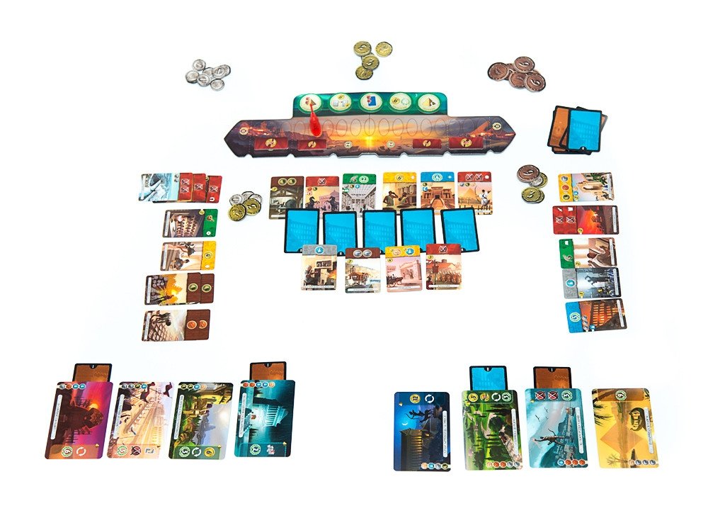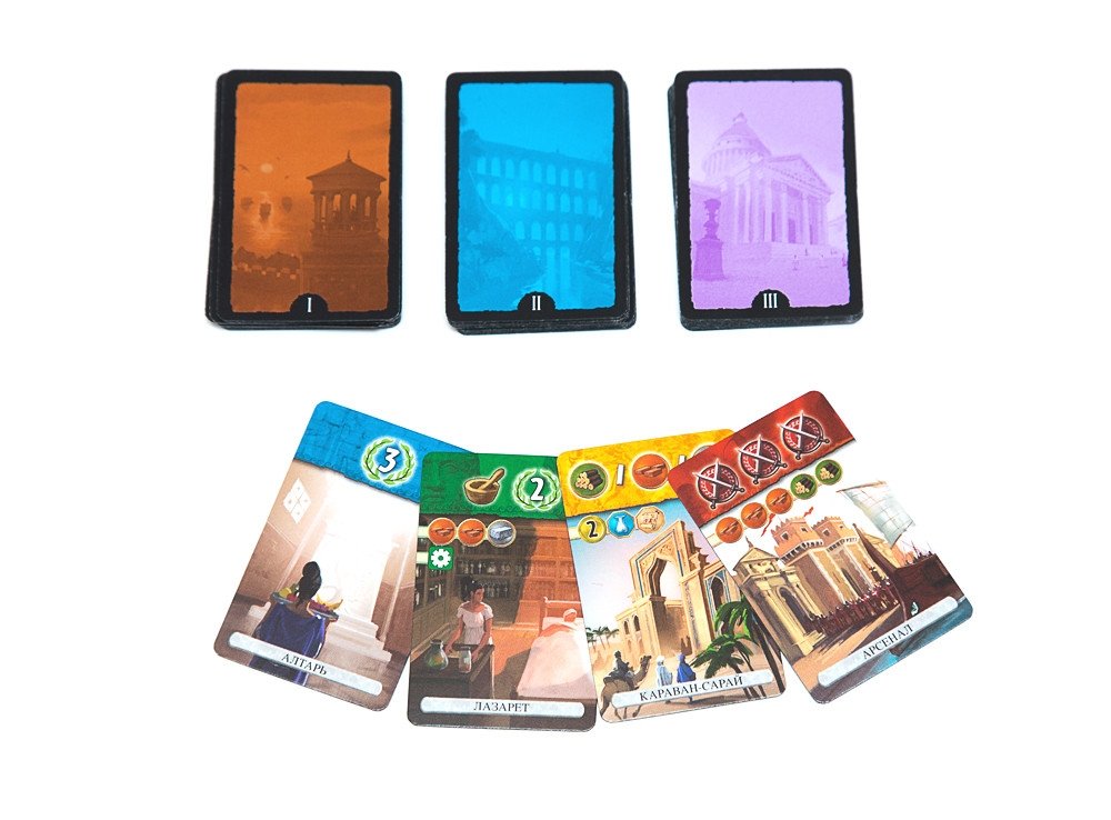 Внутри вас ожидает совершенно новая система выбора карт, 3 разных способа одержать победу, включая научное и военное превосходство, а также 12 чудес света, с которыми каждая последующая игра будет интереснее предыдущей!
