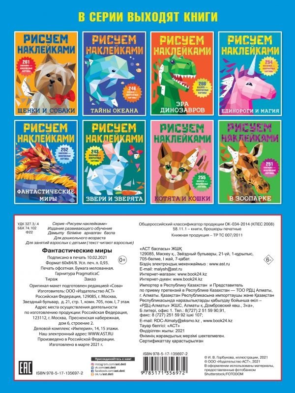 «Фантастический мир» — самая настоящая волшебная книжка для юных художников. Это красочные иллюстрации + более 250 геометрических стикеров. Ребята узнают, что рисовать можно не только карандашами, фломастерами или красками, но и наклейками. Получаются картинки с 3D-эффектом! Достаточно подобрать наклейки по номерам. Ребёнок удивится и обрадуется, когда дракон, жар-птица, ящер, крылатый конь на страницах станут красочными и объёмными. Юным художникам обязательно понравятся интересные задания на развитие логики, памяти, внимания, мелкой моторики.