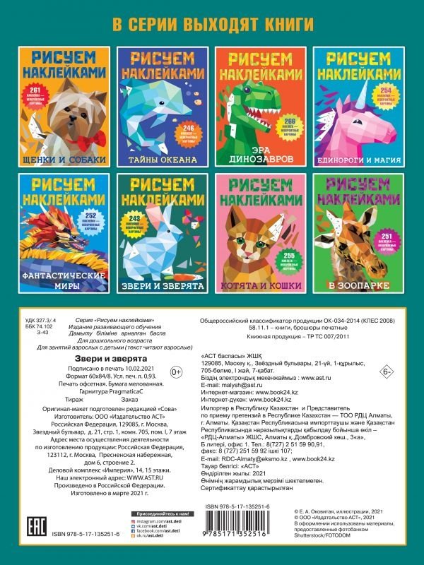 «Милые зверята» — самая настоящая волшебная книжка для юных художников. Это красочные иллюстрации + более 250 геометрических стикеров. Ребята узнают, что рисовать можно не только карандашами, фломастерами или красками, но и наклейками. Получаются картинки с 3D-эффектом! Достаточно подобрать наклейки по номерам. Ребёнок удивится и обрадуется, когда картинки животных на страницах станут красочными и объёмными. Юным художникам обязательно понравятся интересные задания на развитие логики, памяти, внимания, мелкой моторики.