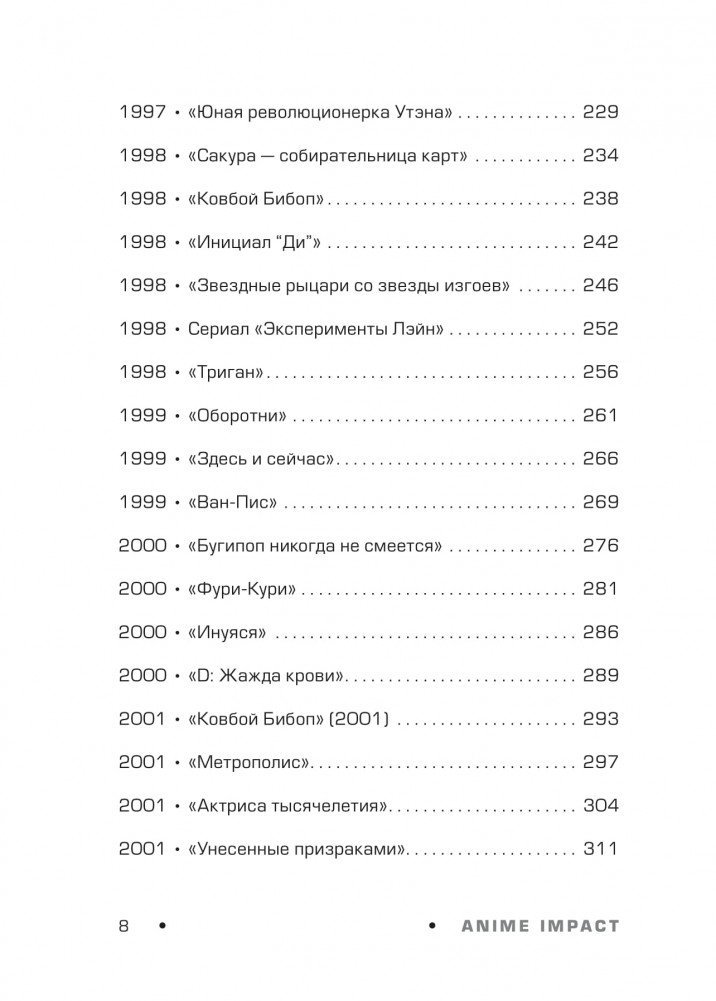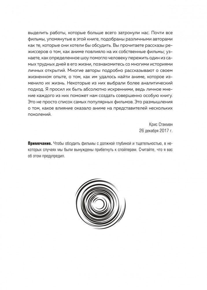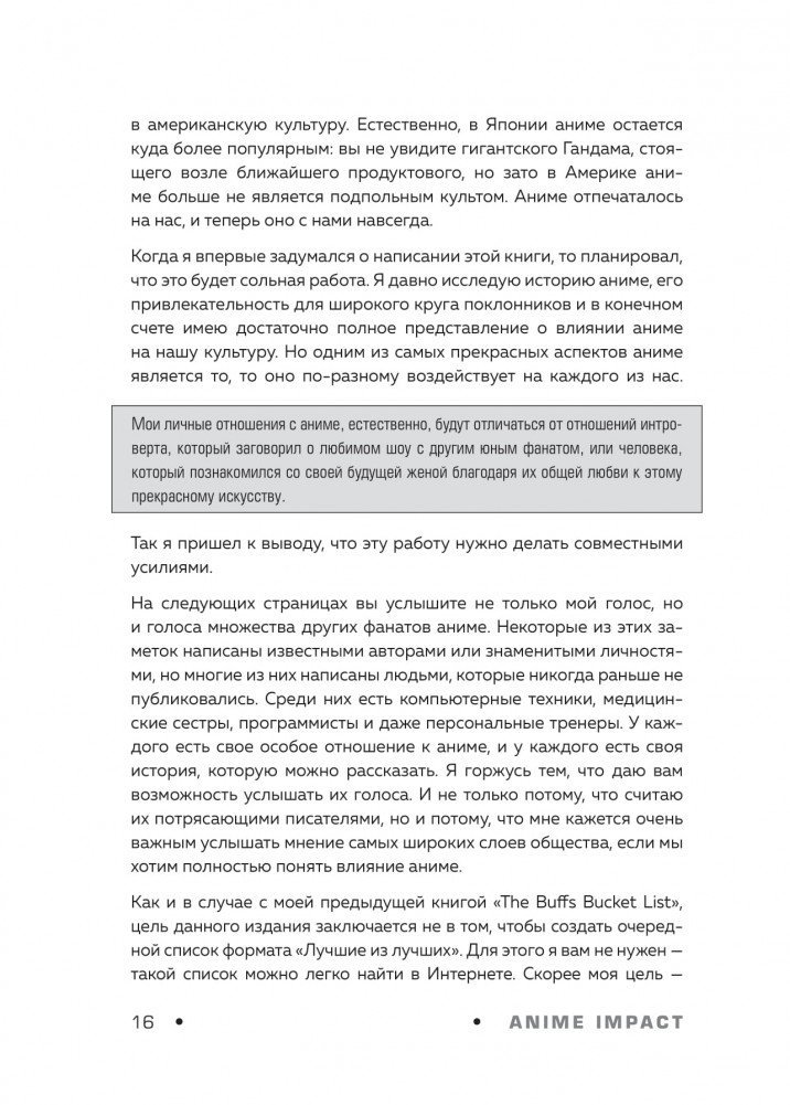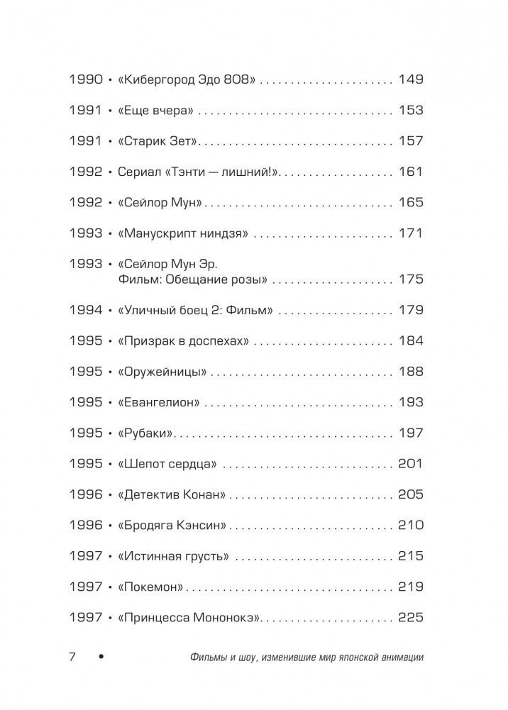 Внутри вы найдете десятки рецензий и личных историй разных людей про то, как аниме изменило их жизни. Это не просто список самых популярных фильмов (такой можно легко найти в интернете). Это размышления о том, какое влияние оказало аниме на представителей нескольких поколений. От "Призрака в доспехах" до "Твоего имени", от "Ковбоя Бипоп" до "Моего соседа Тоторо", от "Покемонов" до "Наруто", от "Сейлор Мун" до "Тетради смерти" — каждое аниме из этой книги может вызвать волну ностальгии, стать неожиданным открытием, скоротать вам вечер или помочь справиться с трудной ситуацией.