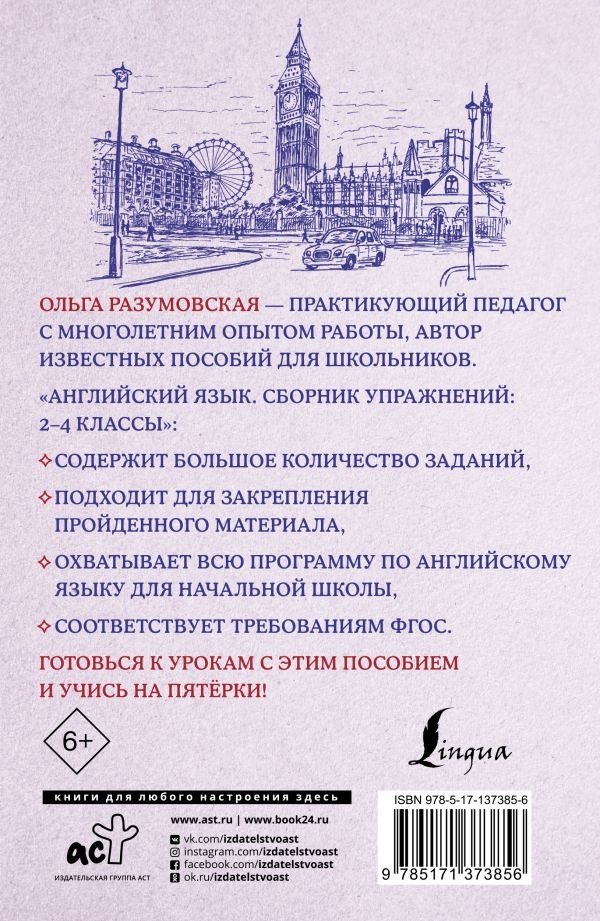 Эта книга составлена педагогом с большим опытом преподавания. Материал излагается в доступной для учащихся форме и соответствует школьной программе для 2–4 классов. В этом издании представлены упражнения, соответствующие учебной программе по английскому языку для начальной школы и требованиям ФГОС. Регулярное выполнение заданий данного сборника позволит ребенку быстрее усвоить материал и поможет устранить имеющиеся пробелы в знаниях.