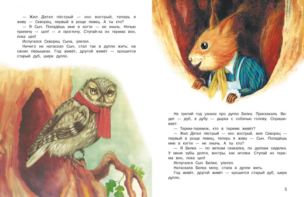 В сборник вошли сказки одного из самых любимых детских писателей Виталия Бианки «Теремок», «Паучок-пилот», «Как Муравьишка домой спешил» и «Мышонок Пик». Удивительные мир сказочной природы оживает на страницах книги благодаря многочисленным красочным иллюстрациям Евгения Подколзина. Нарисованных им зверюшек так и хочется погладить.