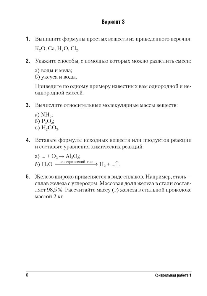 Сборник содержит контрольные и самостоятельные работы по химии для 7 класса, представленные в четырех вариантах. Все варианты включают разноуровневые задания, которые разработаны согласно нормам оценки результатов учебной деятельности учащихся.