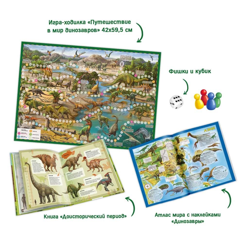 Подарок для самых умных в чемоданчике. Все о динозаврах. Книга + Игра-ходилка + Атлас с наклейками