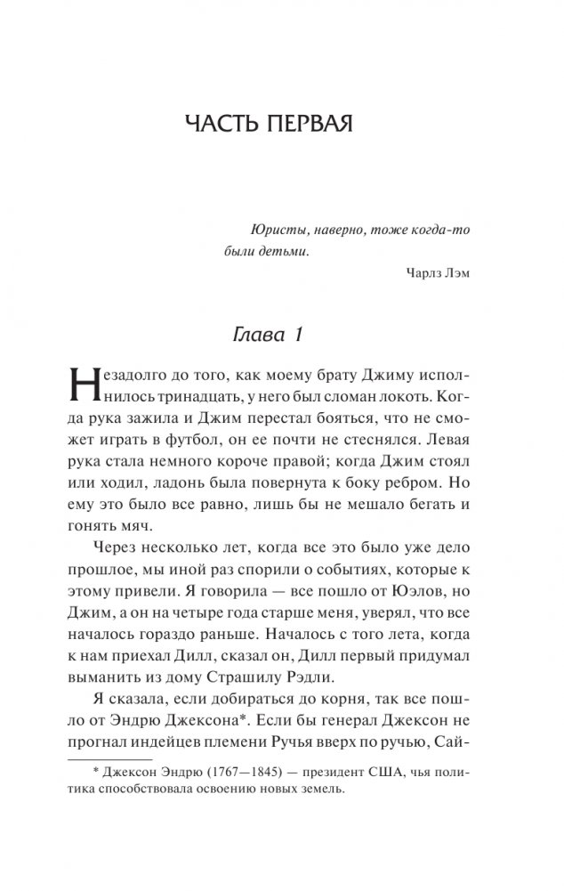 История ее брата Джима, друга Дилла и ее отца – честного, принципиального адвоката Аттикуса Финча, одного из последних и лучших представителей старой «южной аристократии».