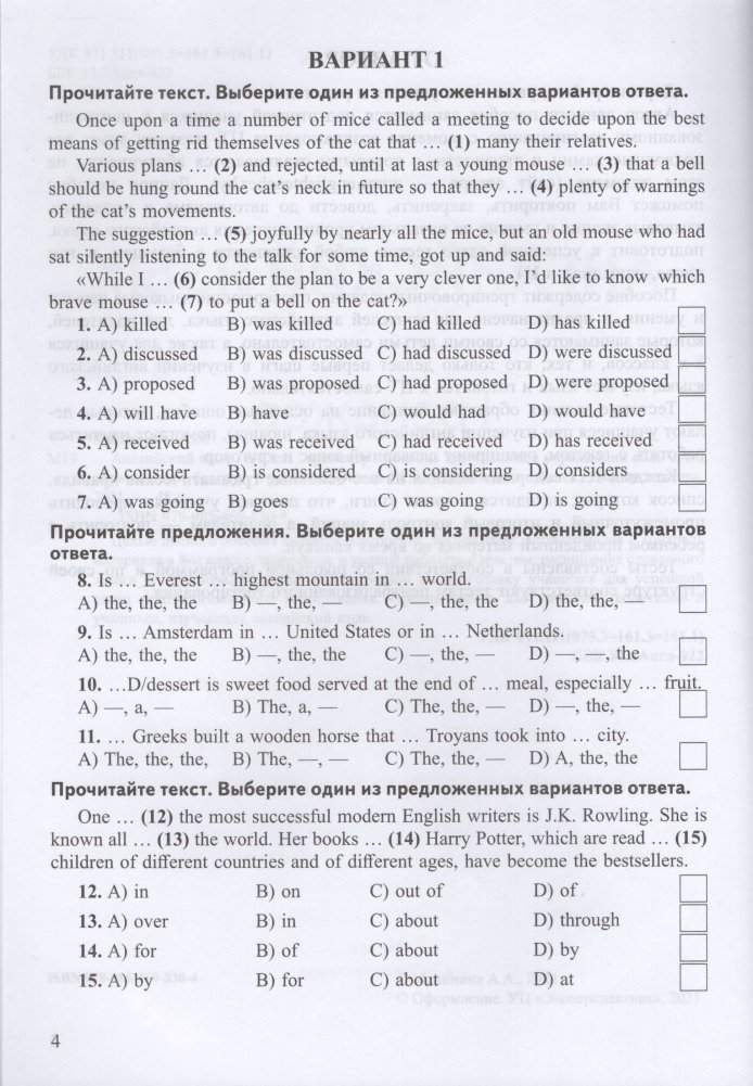 Целью данного пособия является повторение, закрепление, автоматизация и контроль материала в 8-м классе, понимание и умение работать с текстом, расширение словарного запаса и кругозора. Пособие организовано на подготовку учащихся для успешной сдачи централизованного тестирования. Предназначено для учителей, родителей и учащихся, изучающих английский язык.
