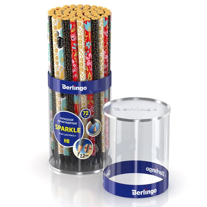 Карандаш ч/г Berlingo "Sparkle" HB, черное дерево, трехгран., заточен., ассорти